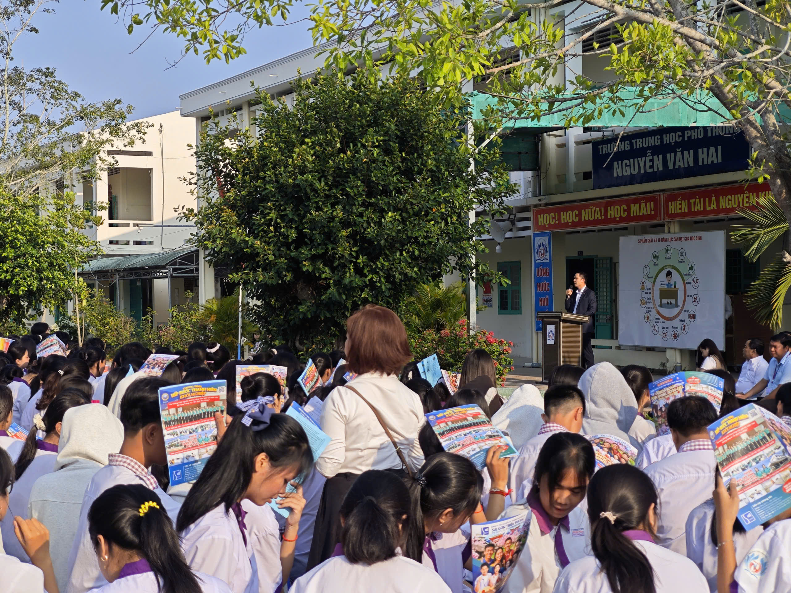 Ngày 13/04/2026 vừa qua, Công ty Cổ Phần Đầu Tư Thương Mại Quốc Tế Sài Gòn Thiên Vương đã có buổi tư vấn hướng nghiệp cho hơn 1000 bạn học sinh tại trường THPT Nguyễn Văn Hai – tỉnh Vĩnh Long. Với chương trình ” Tiếp Bước Thanh Niên Khởi Nghiệp ” đã giúp cho các bạn hiểu rõ hơn, an tâm hơn về cơ hội việc làm tại Nhật Bản sau khi tốt nghiệp, từ đó trao hy vọng cho các bạn có hoàn cảnh khó khăn thực hiện ước mơ.
